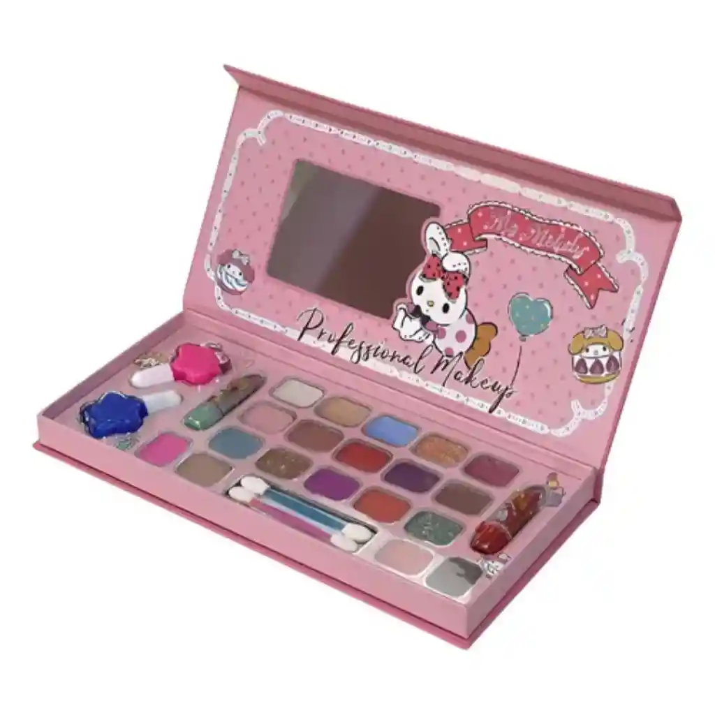 Somos TELEPRODUCTOS BOGOTA Productos 100% garantizados, años de experiencia en ventas online.! -Cuando realices la compra recibirás toda la información de contacto y datos para que puedas hacer seguimiento a tu producto.! ----------------------------------------------------------------------------------------------------------------------- Descubre la Paleta de Maquillaje Infantil My Melody , diseñada especialmente para niñas que aman explorar su creatividad y jugar con el color. Este set de maquillaje incluye una gama vibrante de sombras de ojos, rubores, brillos labiales y aplicadores, todo presentado en un adorable estuche rosa decorado con el icónico personaje My Melody +++++ Beneficios: Diseño atractivo y temático: Inspirado en My Melody, ideal para niñas que adoran este personaje. Materiales seguros: Elaborado con ingredientes suaves y no tóxicos, adecuados para pieles sensibles. Educación creativa: Promueve el desarrollo de habilidades motoras y estimula la creatividad. Todo en uno: Incluye sombras de ojos en tonos mate y brillantes, rubores, brillos labiales y accesorios para una experiencia completa. +++++ Características: Paleta con 19 colores diferentes de sombras de ojos. Rubor y brillo labiales en tonos vivos y fáciles de aplicar. Incluye aplicadores de doble punta y espejito integrado. Estuche compacto y resistente, perfecto para llevar a cualquier lugar.