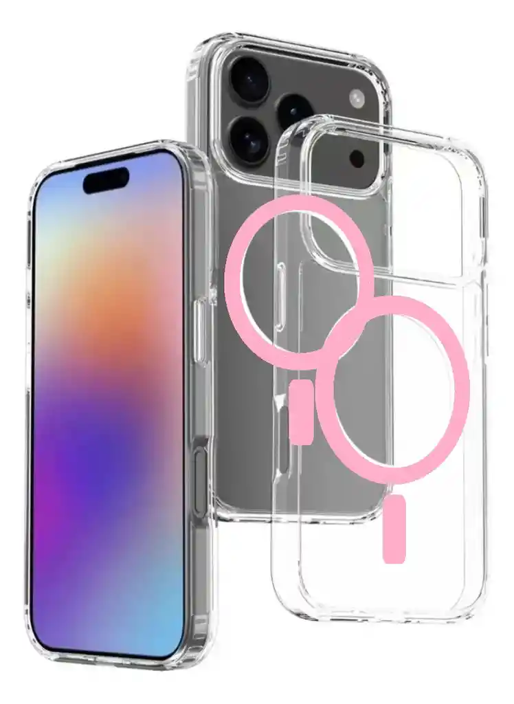 Estuche Transparente Magsafe Iphone 17 Pro Rosado