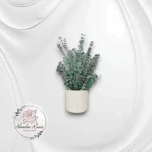 Un jarrón pequeño color blanco de eucalipto fresco es una pieza elegante y natural que aporta frescura, aroma y estilo a cualquier ambiente. combina fácilmente con cualquier estilo de decoración, desde minimalista hasta rústico.