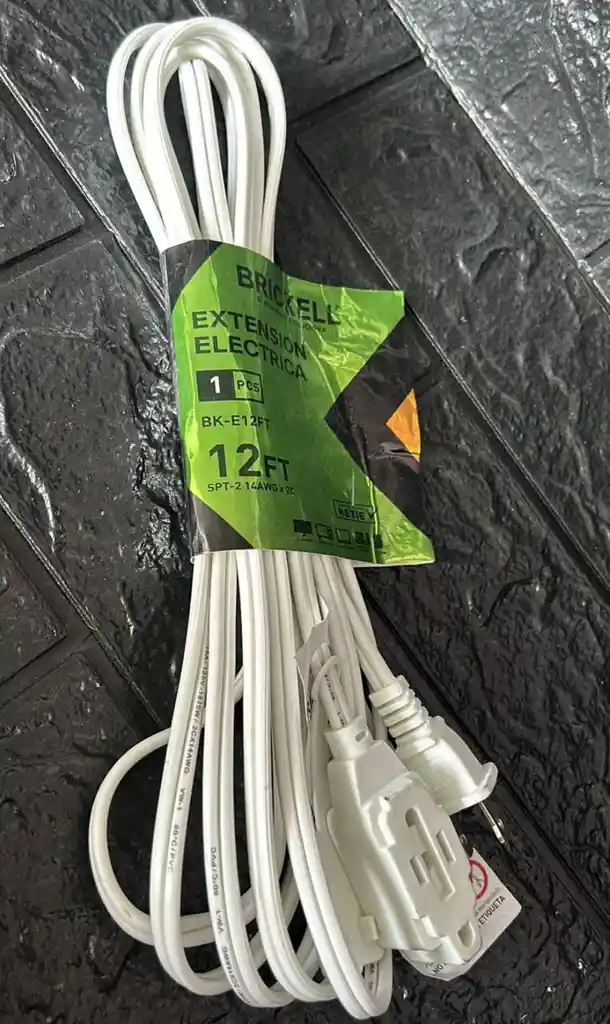 EXTENCION ELECTRICA 12FT 3.65 METROS CABLE BLANCO COD.2468