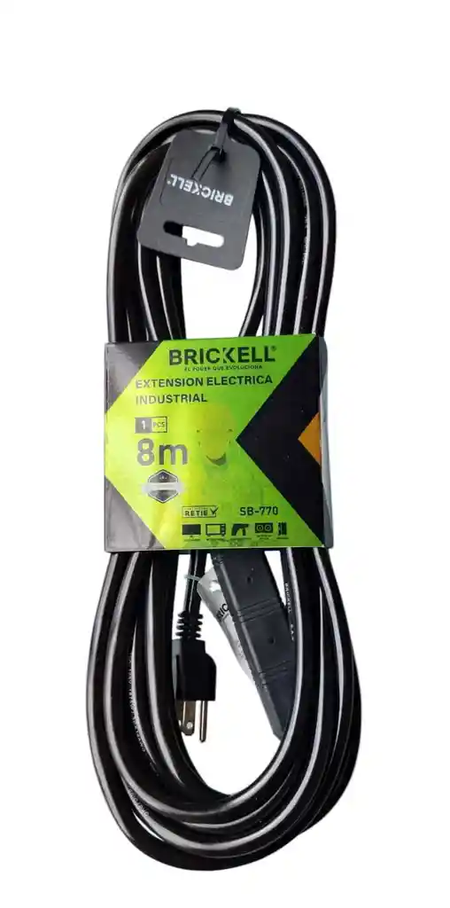 Extensión eléctrica industrial Brickell de 8 metros, diseñada para brindar potencia y seguridad en cada conexión. Fabricada con materiales de alta calidad y cable grueso resistente, ideal para herramientas eléctricas, electrodomésticos y equipos de alto consumo. Cumple con la norma RETIE, garantizando un uso confiable tanto en el hogar como en ambientes industriales.