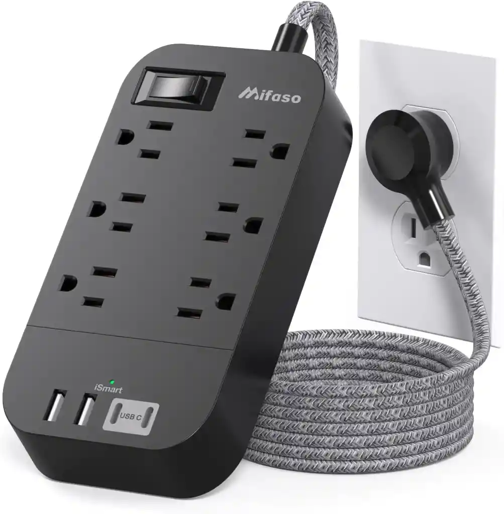 AL0000002147 Regleta Eléctrica 6 Tomas 4 USB Protección Sobrecarga 3metros REGLETA DE ALIMENTACIÓN CON PUERTOS USB A Y USB C El cable de extensión cuenta con 6 tomas de corriente, 2 puertos USB A y 2 puertos USB C. Incorpora tecnología de carga inteligente que detecta automáticamente los dispositivos y ofrece la velocidad de carga más rápida de hasta 2.4 A por puerto. Los 4 puertos USB proporcionan una salida total de 5 V / 3.1 A / 15 W, permitiendo cargar casi cualquier dispositivo USB como teléfonos inteligentes, tabletas, Amazon Kindle, audífonos Bluetooth y altavoces portátiles. CABLE DE EXTENSIÓN CERTIFICADO UL DE ALTA RESISTENCIA Incluye un cable extralargo de 3 metros, certificado por UL. El cable de alimentación cuenta con aislamiento trenzado duradero y una chaqueta resistente, además de un enchufe plano que ahorra espacio y permite que la unidad se ajuste cerca de la pared. La carcasa de PC resistente al fuego con retardante de llama hasta 1382 °F la hace más duradera y segura. Utiliza conductor de cobre 100 % de alta disipación de calor, probado para más de 10.000 ciclos de conexión, con conductor especial de cobre de fósforo en el enchufe. INTERRUPTOR DE ENCENDIDO Y PROTECCIÓN DE SEGURIDAD La regleta incorpora múltiples módulos de seguridad que protegen computadoras, televisores y otros dispositivos electrónicos contra sobrecargas, cortocircuitos y fluctuaciones de voltaje. El interruptor de sobrecarga se apaga automáticamente para proteger tus dispositivos y tu hogar. La luz indicadora muestra cuando la energía está activa sin generar brillo molesto en la oscuridad. ENCHUFE PLANO DE ÁNGULO RECTO Y MONTAJE EN PARED El enchufe plano de perfil bajo se adapta fácilmente a espacios reducidos. Cuenta con dos orificios para montaje en pared y un cable de 3metros, permitiendo una instalación segura en bancos de trabajo, paredes, pisos, debajo de mostradores y otros espacios. DISEÑO COMPACTO, ESTABLE Y VERSÁTIL Incluye ranuras de fijación y diseño para montaje con tornillos, permitiendo instalarla en pared o fijarla al escritorio. La base de goma antideslizante proporciona estabilidad sobre escritorios o mesas de noche. Ideal para oficina, dormitorio, habitación de invitados, cocina, baño y espacios de trabajo.