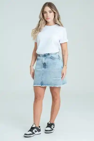 Corta en Denim Rígido 100% Algodón Tono Medio Con Manualidad Cinco Bolsillos Ruedo al Corte.