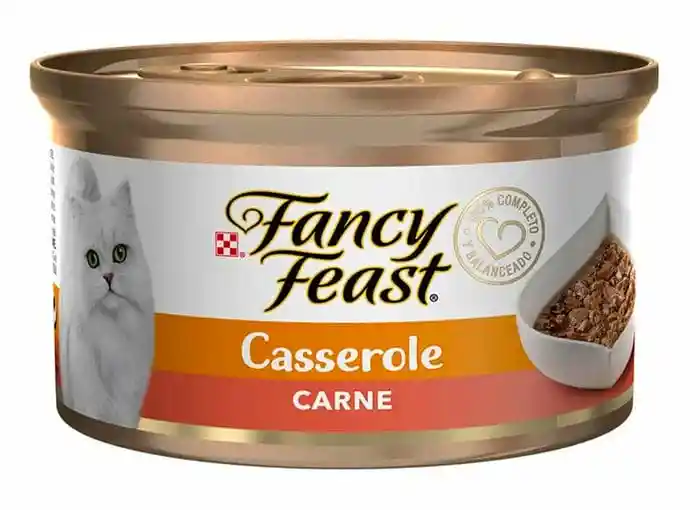 Comida húmeda para gato Purina® Fancy Feast® Casserole sabor a carne. Suculentos trocitos finamente combinados con un tierno paté. Alimenta a tu gato con una combinación del 60% de su alimento seco con un 40% de alimento húmedo de su preferencia. Eleva su experiencia gastronómica con una variedad de platillos gourmet preparados tal y como a él le gustan.