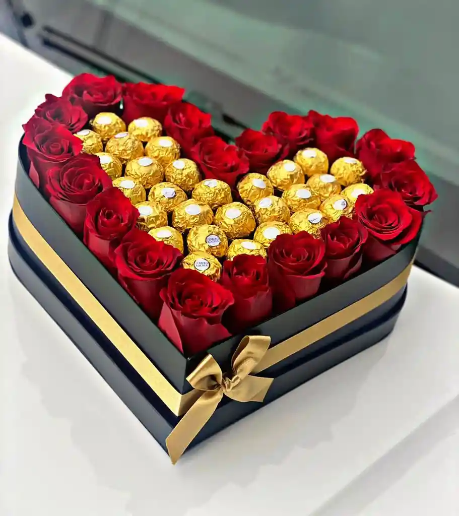 Corazon de rosas, chocolates