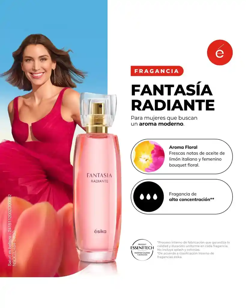 Eau de Parfum para mujer de aroma floral de alta concentración, con frescas notas de aceite de limón italiano y femenino bouquet floral. Para la mujer llena de vida, con una energía positiva y actitud fresca y divertida. Capacidad: 50 ml. NSOC32484-24CO