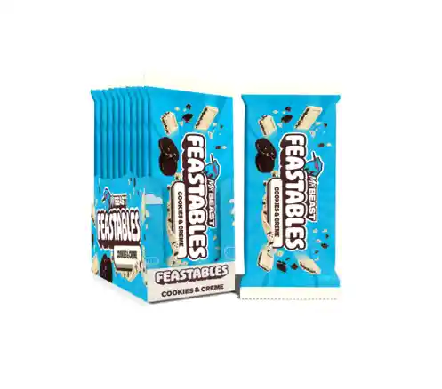 Feastables Mr. Beast Cookies & Creme 60g - El Clásico Reinventado Descubre la Feastables Cookies & Creme, una reinterpretación magistral del sabor más icónico de la infancia. En estos 60 gramos se encierra la esencia de lo que significa elevar un clásico atemporal a dimensiones de perfección nunca antes imaginadas.