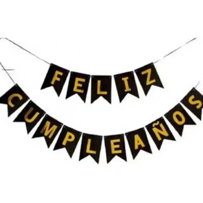 Feliz Cumpleaños Guirnalda Letrero Pequeño Negro Letras Doradas 17 X 12 Cm cada banderin