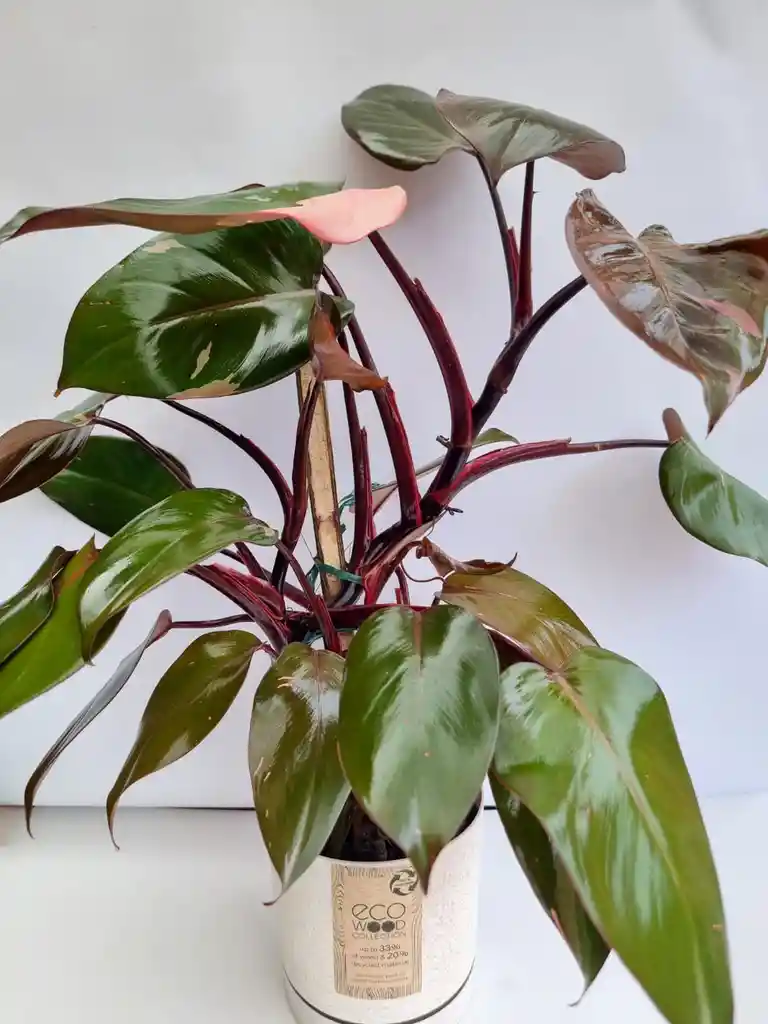 PHILODENDRON PINK PRINCESS + MACETA ECOFIBRA Planta de color verde y rosa, lo que le da un atractivo estético muy llamativo para adornar ambientes de interior, aportando elegancia y sofisticación a los espacios que decora. Es una planta muy resistente y fácil de cuidar.