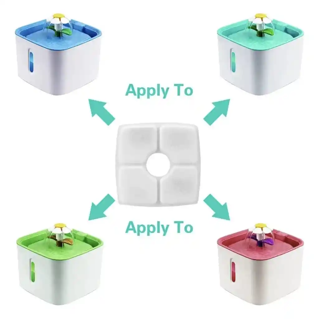 Descripción Filtro de carbón activado para fuente redonda o cuadrada, accesorio de reemplazo para mascotas y gatos, ideal para fuente de agua potable. Características: Filtro de carbón activado para reemplazo de suministro de agua tipo circulación automática * Juego de 4 piezas. Se recomienda que el cambio del filtro sea de una pieza al mes, establecido durante unos ocho meses. Resina de intercambio: se eliminan el magnesio y el calcio en el agua, y se convierte en agua apta para gatos (agua blanda) cuya dureza se reduce. Carbón activado de alto rendimiento: absorbe olores y bacterias. Al limpiar el filtro, no utilice detergente, enjuague la suciedad de la superficie con agua. Al reemplazar el filtro, asegúrese de limpiar las partes de la Unidad de suministro de agua para garantizar la limpieza. Purifica el agua de tu gato de tres maneras: la malla de algodón filtra los desechos, el carbón activo elimina los olores y las impurezas, la resina de intercambio iónico suaviza el agua Filtro solamente, cualquier otro accesorio no está incluido. Especificaciones: Tipo: Filtro de fuente de agua para mascotas Material: carbón activado, algodón Cantidad: 4 Uds. ESTILO: redondo/cuadrado Color del artículo: blanco
