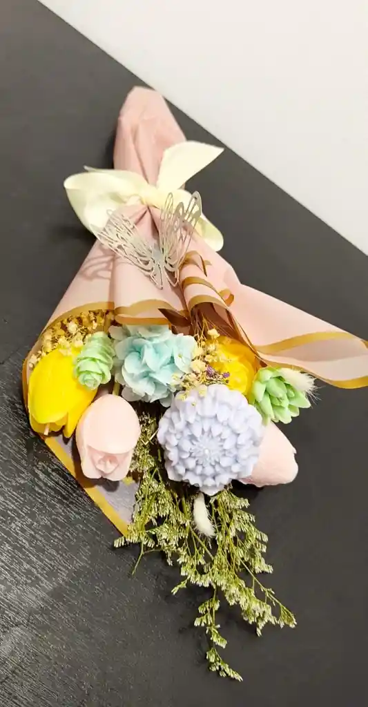 Arreglo de velas en forma de bouquet con aceites esenciales y soya