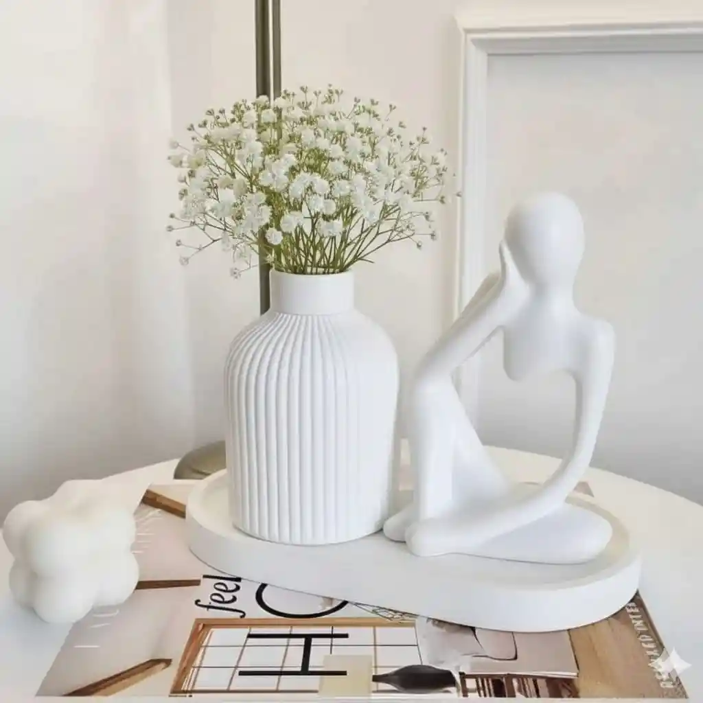 Florero, bandeja y escultura blanco Material concreto