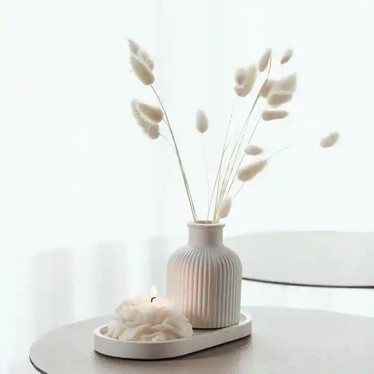 Florero, bandeja y vela de rosa
