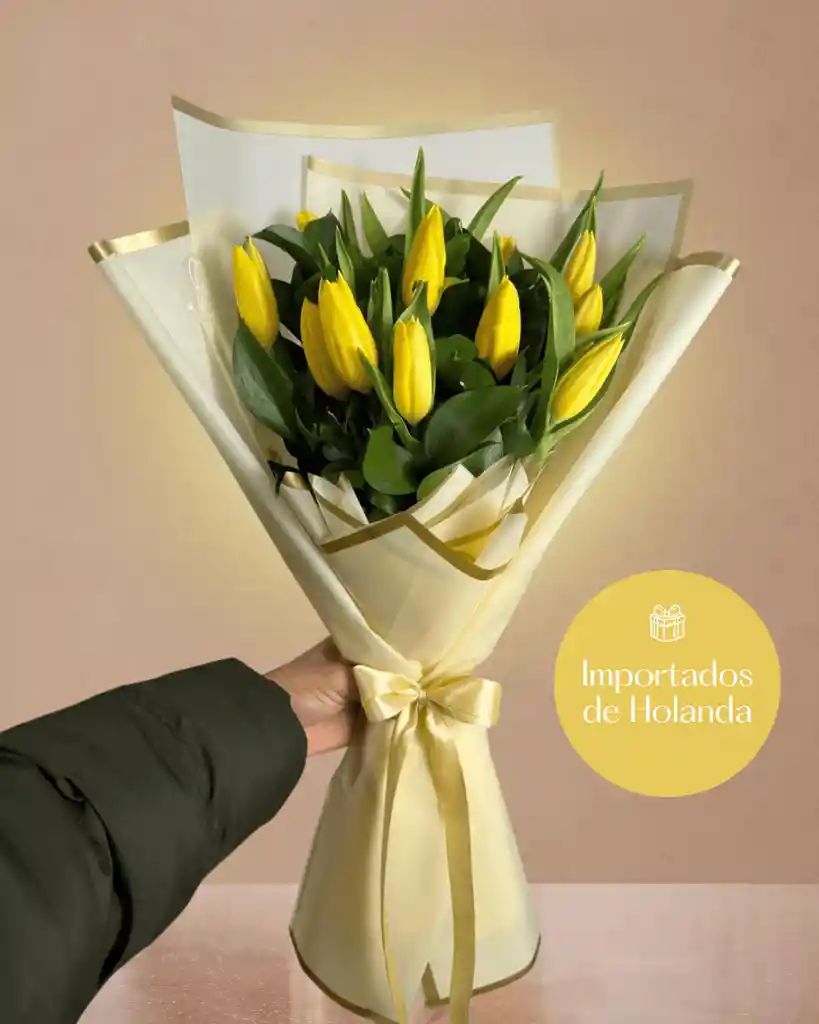 Bouquet de 10 Tulipanes amarillos importados desde Holanda.