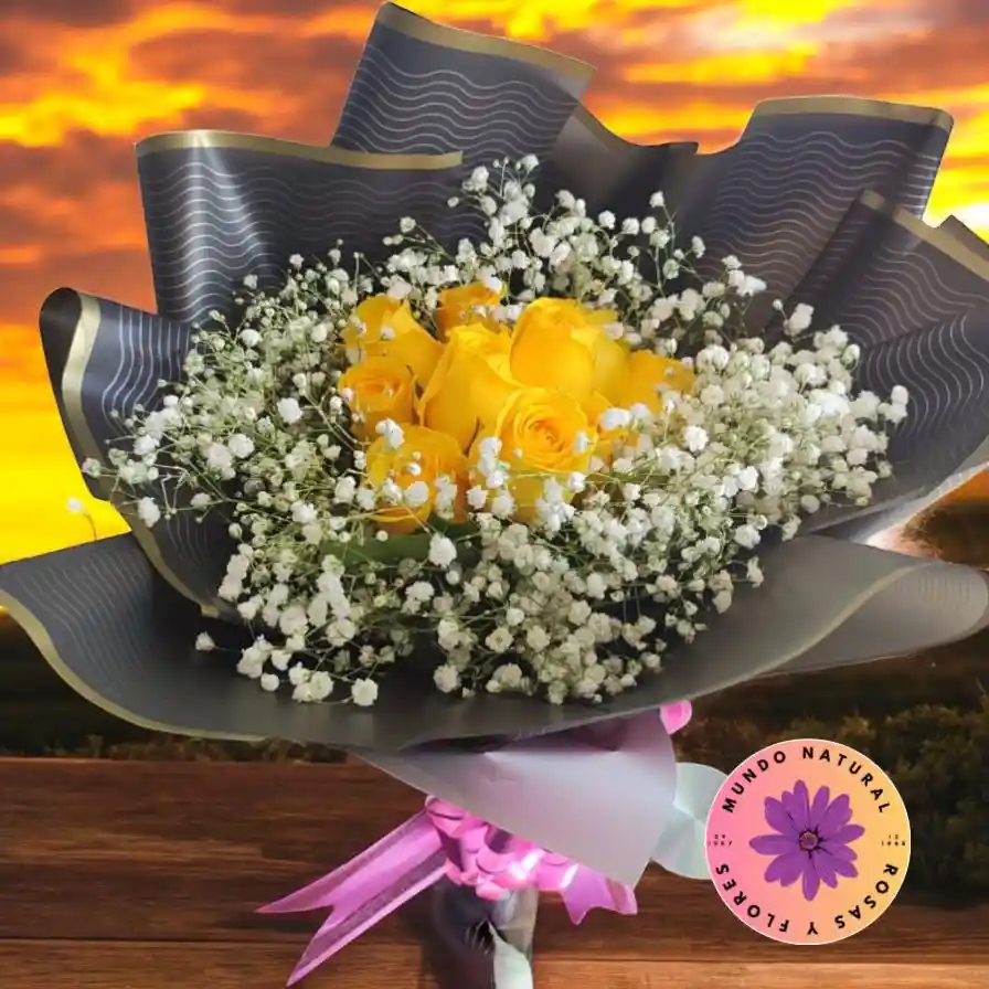 Un arreglo lleno de luz y dulzura con 12 rosas amarillas, símbolo de amistad y alegría, acompañadas de delicadas gypsophilas blancas que aportan un toque romántico y etéreo. Ideal para celebrar momentos especiales con ternura y estilo.