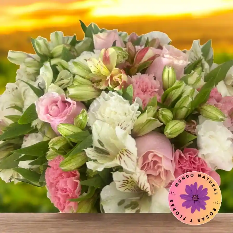 Encantador arreglo con astromelias, rosas rosadas y claveles, una mezcla tierna y delicada que transmite dulzura, gratitud y amor sincero. Perfecto para regalar en ocasione