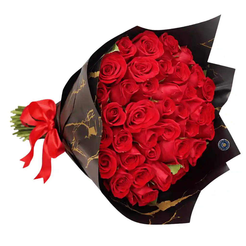 Bouquet de 36 Rosas Un ramo elegante y abundante que resalta la belleza de las rosas🌹✨. Incluye un bouquet con papel coreano, treinta y seis rosas frescas, decorado con un moño elegante. Puedes elegir el color de las rosas para personalizarlo según la ocasión. Si nos envías tu mensaje, te obsequiamos la tarjeta personalizada para expresar tus sentimientos de manera única. REF: FLW03