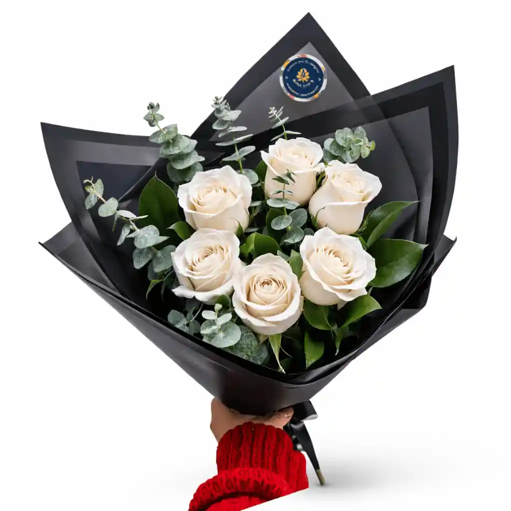 Un detalle romántico y atemporal que transmite amor en cada pétalo 🌹✨. Incluye un bouquet con seis rosas frescas, adornadas con follaje natural y papel fino, terminado con un moño decorativo elegante. Perfecto para regalar en cumpleaños, aniversarios o simplemente para expresar tus sentimientos en cualquier ocasión especial. Si nos envías tu mensaje, te obsequiamos la tarjeta personalizada para acompañar tu detalle. REF: ADF3