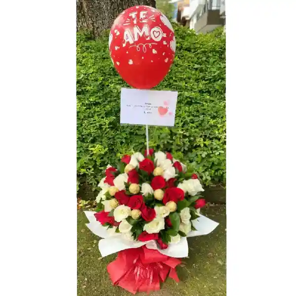 Arreglo en Rosas Rojas y Blancas + chocolates
