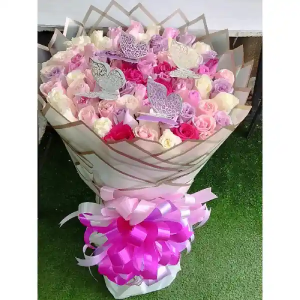 Arreglo floral con 50 rosas en tonos color pastel