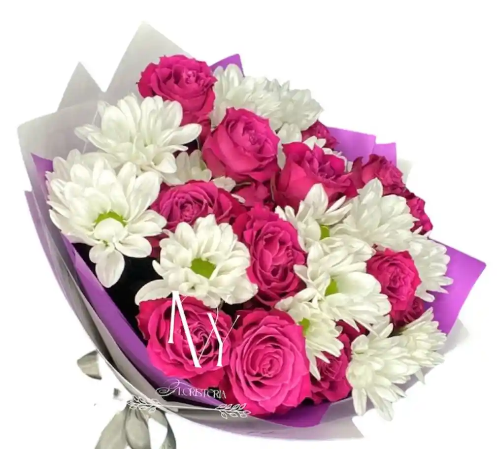 Hermoso bouquet de rosas fucsia y flores surtidas, un detalle ideal para esa ocasión especial