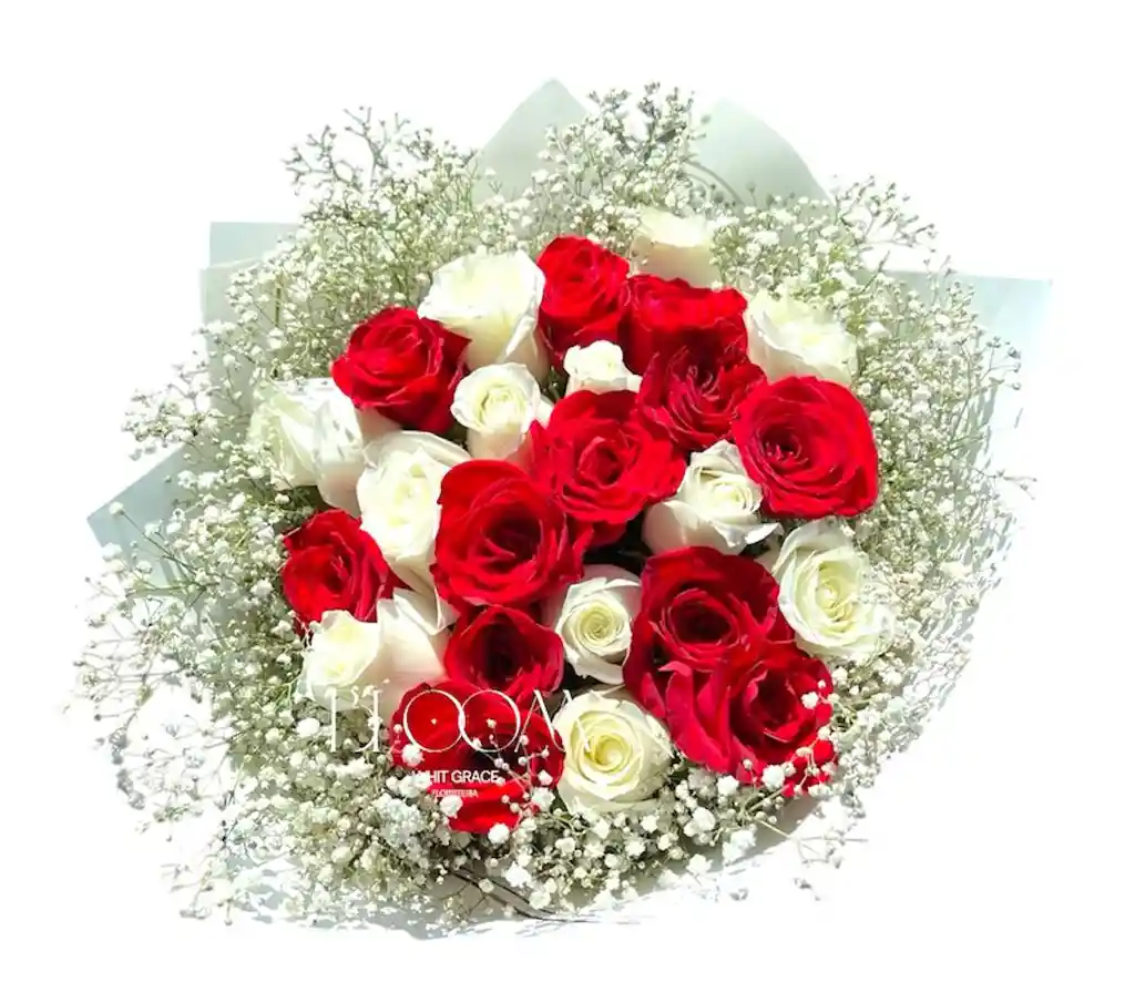 Hermoso bouquet de rosas rojas y blancas de la mejor calidad, un detalle ideal para sorprender a la persona que amas