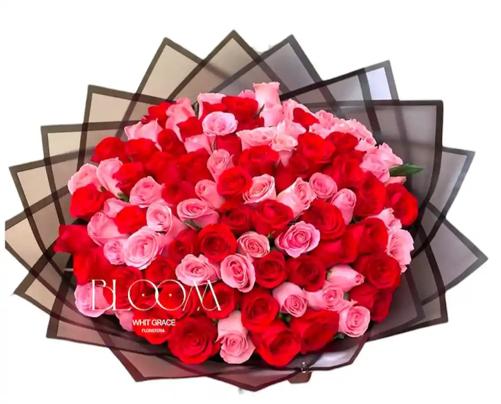 Hermoso bouquet de rosas rojas y rosadas x100, un det5alle ideal para sorprender a la persona que amas