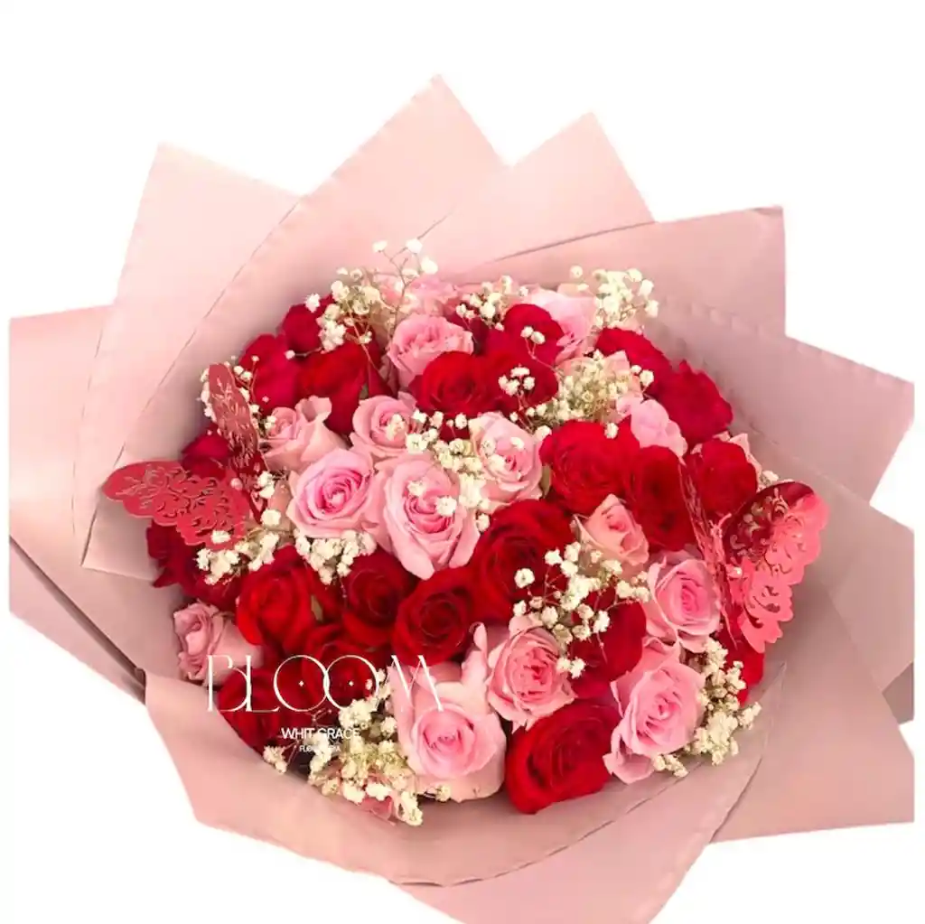 Hermoso bouquet de rosas rojas y rosadas de la mejor calidad, un detalle ideal para esa ocasión especial