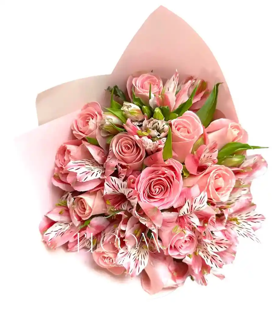 Hermoso bouquet de 12 rosas rosadas con astromelia de la mejor calidad, un detalle ideal para esa ocasión especial