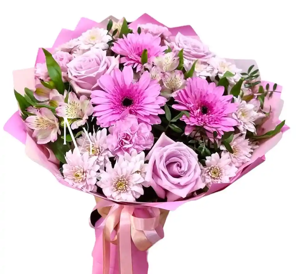Hermoso bouquet de rosas lila y flores surtidas en tono pastel, un detalle ideal para esa ocasión especial