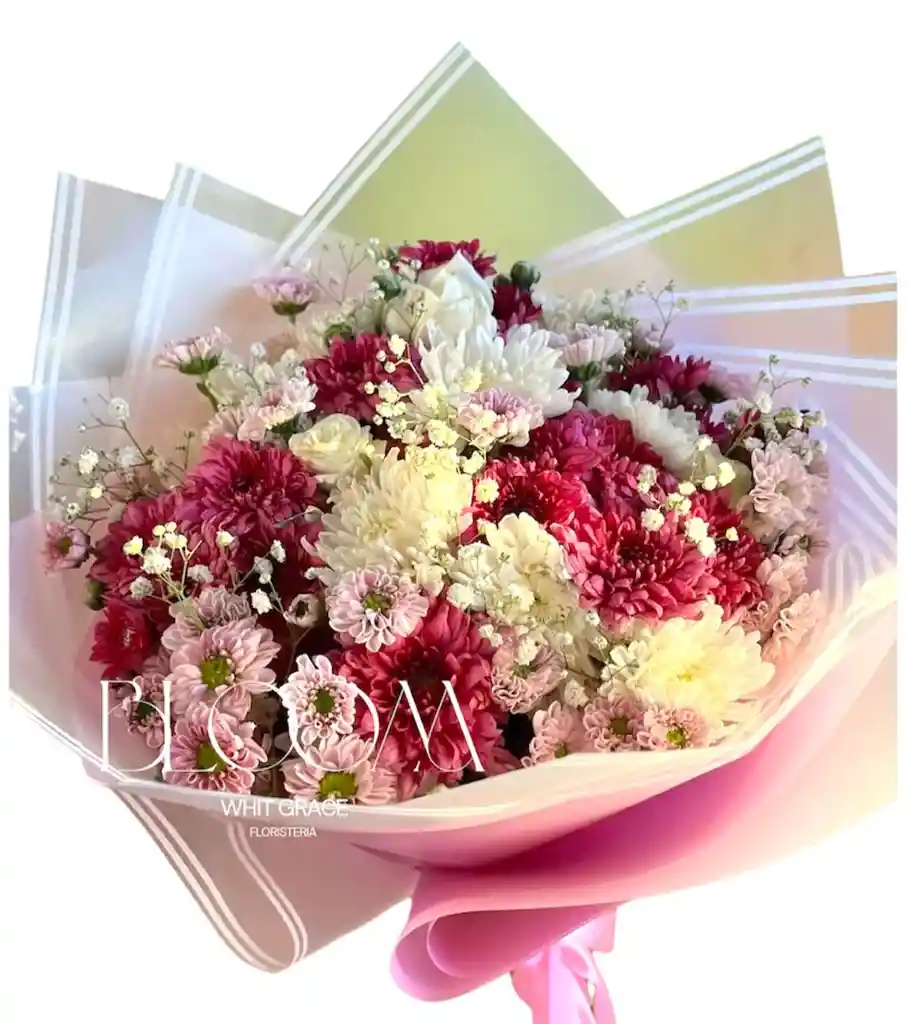 Hermoso bouquet de margaritas surtidas en tonos rosa, un detalle ideal para esa ocasión especial