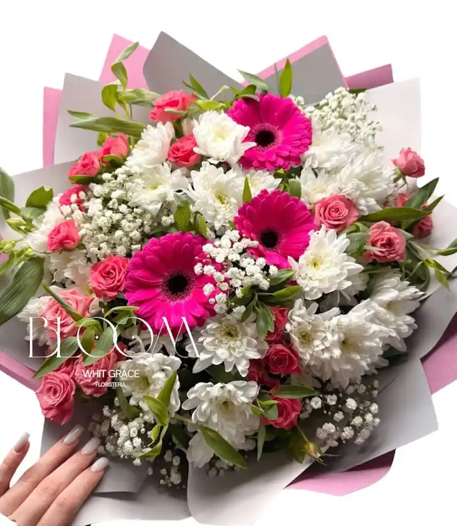 Hermoso bouquet de flores surtidas en tonos rosados, un detalle ideal para esa persona especial
