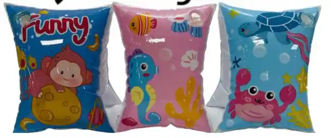 Los bonitos amigos acuáticos estampados en cada uno animan a tus hijos y son la herramienta perfecta para ayudarles a aprender a nadar. Infla fácilmente estos manguitos y deja que tus hijos disfruten de las caras de los amigos del mar que les sonríen. Estos manguitos de entrenamiento de natación de talla única ayudarán a los niños a flotar y a aprender las técnicas adecuadas para entrar en el agua. Edad recomendada 2-6 años