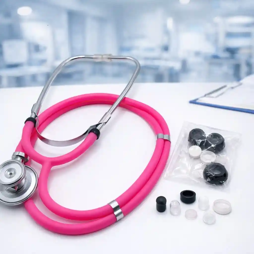 El Fonendoscopio Tenso Rappaport Doble Servicio está diseñado para brindar una excelente transmisión del sonido gracias a su sistema de doble manguera, permitiendo una auscultación más clara y precisa. Cuenta con doble campana para adulto y pediátrico, lo que permite su uso en distintos tipos de pacientes. Está fabricado con materiales resistentes y manguera flexible en PVC, proporcionando durabilidad y comodidad durante su uso. Incluye estuche de transporte y accesorios intercambiables, ideal para médicos, enfermeros, estudiantes de medicina y profesionales del área de la salud. Características * Sistema de doble manguera para mejor acústica * Doble campana: adulto y pediátrico * Manguera flexible de PVC * Incluye accesorios intercambiables * Incluye estuche de transporte * Diseño profesional y resistente Color: Rosado Contenido del paquete * 1 Fonendoscopio Rappaport * Accesorios de repuesto * 1 Estuche de transporte