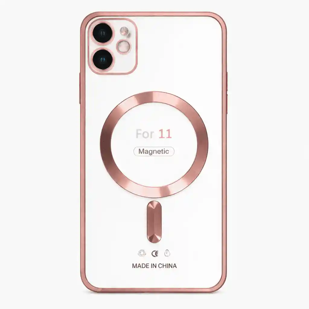 Protección con estilo propio Este forro MagSafe para iPhone 11 está pensado para quienes quieren proteger su celular sin renunciar al diseño. Su estructura absorbe impactos cotidianos mientras mantiene un perfil delgado y cómodo. El sistema magnético facilita la carga inalámbrica sin necesidad de retirar la funda, haciendo todo más práctico. Es una opción ideal para uso diario, donde la estética y la funcionalidad deben convivir sin esfuerzo. Especificaciones Forro de carga MagSafe para iPhone 11 elaborado en TPU de alta flexibilidad con refuerzos en policarbonato, color oro rosa, tipo funda protectora con compatibilidad para carga magnética, medidas aproximadas 15 cm de alto, 7.5 cm de largo y 1 cm de ancho. Incluye Un forro de carga MagSafe compatible con iPhone 11. Garantía Garantía de 30 días por defectos de fabricación. Política de Retracto 5 días hábiles desde la recepción del producto, siempre que esté completo y sin uso. Nota Importante Si el producto llega golpeado o con piezas faltantes, repórtalo en las primeras 24 horas a la transportadora. Para aplicar la garantía, envía fotos y videos donde se evidencie el defecto.