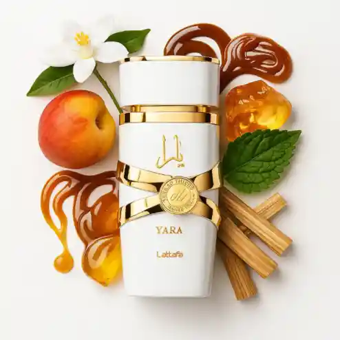 Yara es un exquisito perfume árabe de alta gama, despierta tus sentidos atrevidos entre aromas tropicales, elegantes notas afrodisíacas, y a medida que pasan los minutos sentirás tonos dulces y cálidos brillantes con un sello fresco en polvo. Parte superior: heliotropo, orquídea, mandarina. Medio: acorde gourmand, frutas tropicales. Base: vainilla, sándalo, almizcle Yara Moi, apodado yara blanco, es una de las últimas novedades de 2022 de los últimos perfumes Lattafa. Una fragancia ámbar que revela notas de jazmín y melocotón mezcladas con caramelo sobre una base de sándalo. Parte superior: jazmín, melocotón. Medio: ámbar, caramelo. Base: sándalo, pachulí