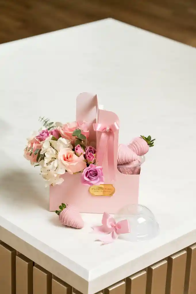 Un detalle dulce, romántico y lleno de estilo. DESCRIPCIÓN Fragola combina la delicadeza de flores con la suavidad irresistible de fresas cubiertas de chocolate rosado, todo presentado en una caja de lujo. INCLUYE - Tarjeta personalizada sin costo adicional.
