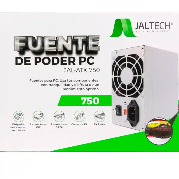Esta fuente de poder tiene las siguientes características: Fuente de poder 230W Reales Fuente de poder para PC · Potencia 230W · Cable largo con longitud 50cm · Cables con recubrimiento en malla negra · 24 pines · 2 conectores IDE · 2 conectores SATA · Conector P4 · Disipador de calor con ventilador · Interruptor on/off: · Interruptor 110V-220V · Carcasa plateada · Medidas: 15cm x 14.2mm x 8.7mm · Ventilador silencioso de 8 cm La fuente de poder ATX Jaltech JALATX750 de 230W es ideal para computadoras de oficina o uso general. Proporciona una salida estable y segura para tu equipo, siendo una excelente opción de repuesto o armado de PC básicas. Compatible con gabinetes ATX estándar y placas madre Intel o AMD, incluye ventilador silencioso para una operación fresca y constante. Perfecta para quienes buscan una fuente económica y confiable para computadoras de escritorio.