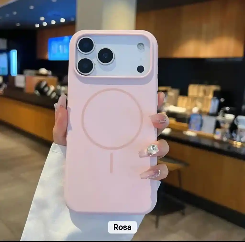 Funda de Silicona con carga Inalambrica para iphone 17 pro max colo rosa