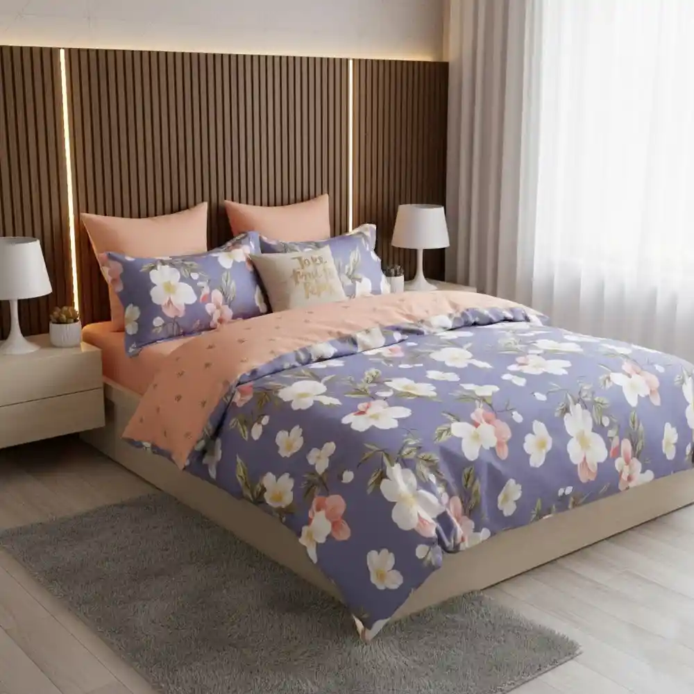Funda Duvet Estampado Flores Sobre Azul Doble + Sabana Plana