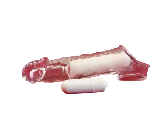 Funda para Pene con Extensión y Bala Vibradora – Más Largo, Más Intenso, Más Placer Explora una experiencia completamente diferente con esta poderosa funda para pene con extensión y bala vibradora incorporada en el glande, diseñada para llevar tus encuentros íntimos al límite del placer. Esta funda no solo aumenta la longitud y el grosor del pene, sino que también incorpora una bala vibradora estratégicamente ubicada en la punta, ofreciendo una estimulación directa e intensa durante la penetración.