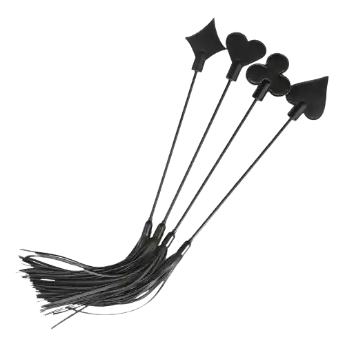 Con esta espectacular fusta con látigo incorporado disfrutarás de los mejores momentos de placer y dominación que podrás vivir. No hay límites para sentir y experimentar muchas más emociones. Vive tu fantasía dominando. Este accesorio erótico es un recambio de fusta en color negro, en forma de figuras que dejará una marca divertida en la piel de tu víctima con cada azote merecido. Con colitas de cuero para darte látigo. Un complemento erótico perfecto para los amantes del bondage