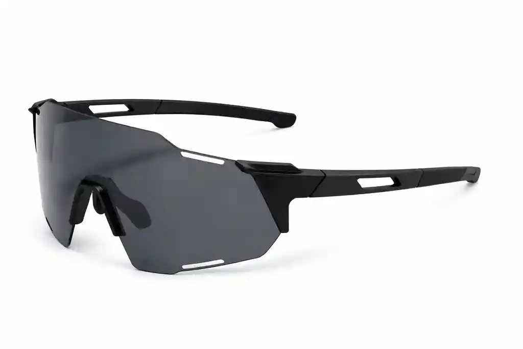 Material: Fabricado en policarbonato de alta resistencia. Montura en plástico técnico reforzado, flexible y duradero. Detalles: Diseño aerodinámico tipo máscara, que brinda amplia cobertura visual y protección frontal. Lente oscuro que ayuda a reducir el deslumbramiento. Ideales para ciclismo urbano y deportivo.