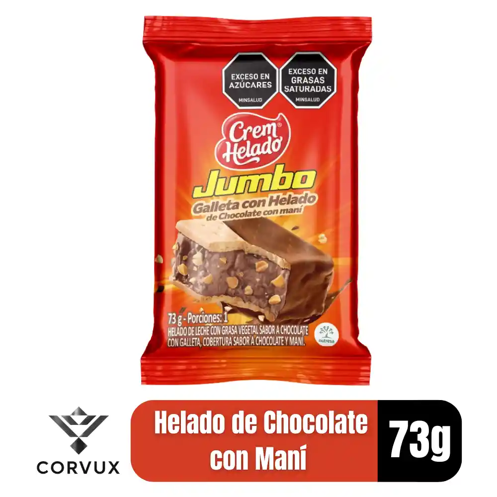 Helado de leche con grasa vegetal, sabor a chocolate con galleta, cobertura sabor a choocolate y mani.
