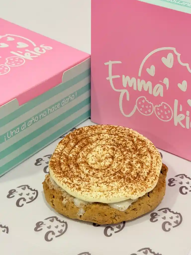Galleta inspirada en el clásico rollo de canela. Suave, aromática y glaseada con un toque cálido y especiado.
