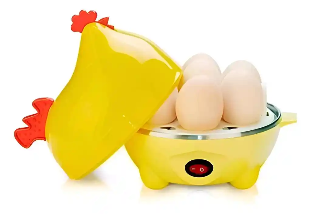 Hervidor eléctrico de huevos duros con apagado automático, sin ruido. El perfecto amigo para tu cocina, con el innovador y conveniente hervidor de huevos es ideal para cocinar 7 huevos a la vez en cuestión de minutos, tan solo, agrega un poco de agua en la bandeja de acero inoxidable. ¿PARA QUE ME SIRVE EL PRODUCTO? Prepara tu desayuno con deliciosos huevos, la máquina para huevos YS-205, con capacidad de hasta 7 huevos, su diseño en forma de gallina es ideal para decoración con tu cocina, además de sus piezas desmontables te será muy fácil la limpieza, tus desayunos nunca serán igual, hazlos en tan solo 10 minutos aproximadamente. CARACTERISTICAS •Capacidad: 7 huevos •Consumo de energía: 350W •Control: pulsador •Material: Placa calefactora de acero inoxidable + plástico PP •Voltaje: 220V o 110V •Cocción rápida: 10 minutos aproximadamente •Indicador visual LED de encendido y apagado •Vaso medidor para el agua con 3 niveles según preparación deseada •Accesorios desmontables para mejor limpieza •Para huevo blando 12 mililitros de agua, para huevo medio 15 mililitros de agua y para huevo duro 20 mililitros de agua. CONTENIDO: * 1 cubierta para hervir los huevos. * 1 base plástica. * 1 base en acero inoxidable. * copa para medida de agua. * manual de usuario
