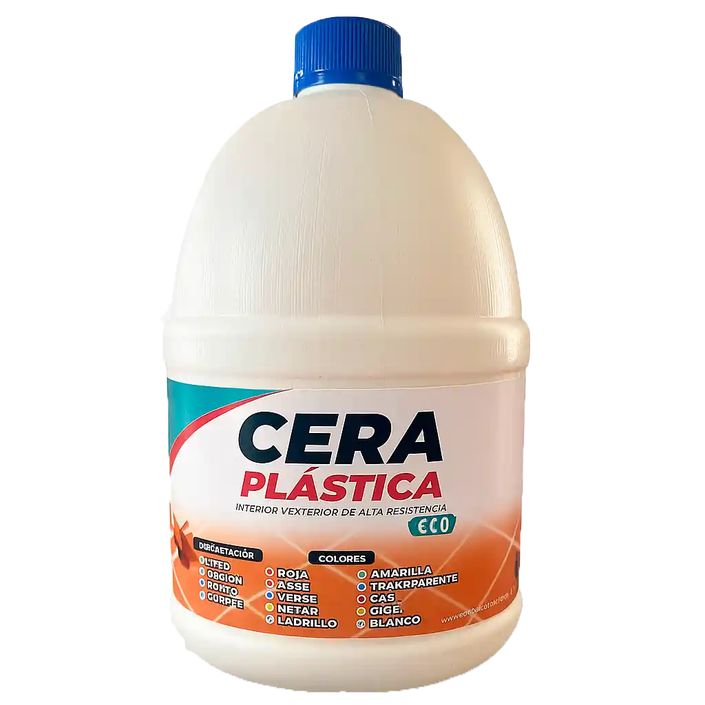 La Cera Plástica Eco es un recubrimiento protector y decorativo de alta calidad, ideal para pisos rústicos y superficies porosas. Su fórmula está diseñada para proteger, renovar y realzar la apariencia del piso, logrando un acabado uniforme, resistente y de fácil mantenimiento. Perfecta para áreas medianas y grandes, tanto en hogares como en espacios comerciales. ⭐ Beneficios principales Protege y renueva pisos rústicos y porosos Realza el color natural del piso Facilita la limpieza y el mantenimiento Alta durabilidad y excelente cobertura Fácil aplicación Producto eco-amigable 🧱 Superficies recomendadas Cemento Baldosa rústica Ladrillo Piedra natural Superficies porosas similares 📦 Especificaciones técnicas Presentación: Galón – 4 litros Rendimiento: Hasta 40 m² (según porosidad de la superficie) Tipo: Cera plástica protectora Uso: Interior y exterior cubierto Aplicación: Rodillo de felpa Secado: Rápido (dependiendo de la superficie y condiciones ambientales) ⚠️ Recomendaciones Aplicar sobre superficie limpia, libre de grasas, pinturas, ceras grasosas, lacas o selladores.