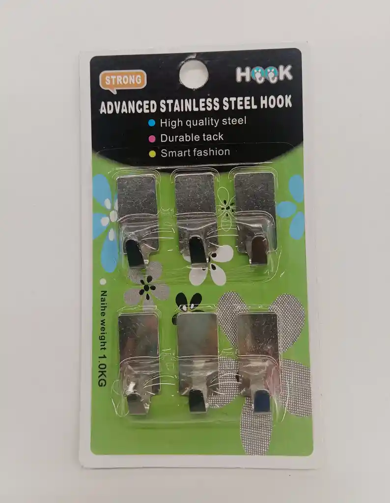 Set de 6 Ganchos Adhesivos en Acero . Soporte: 1 Kilogramo Por Gancho. Acero de Alta Calidad.
