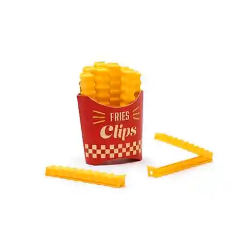 Clips para cerrar bolsas diseño papas Francesas Ganchos para sellar Bolsas Pinzas para bolsas -Ideal para cerrar bolsas. -Diseño de Papas Francesas Fritas. -Con Imán para colocar en la nevera o superficies magnéticas. -Ayuda a proteger tus alimentos al sellar sus empaques. -Prácticos y fáciles de usar. Especificaciones Medidas Clips: 10cm X 1cm X 1,4cm Diseño: Papas Fritas. Color Clips: Amarillo. Color contenedor: Rojo y Amarillo. Material Clips: Plástico seguro para alimentos. Material Contenedor: cartón laminado con imán.