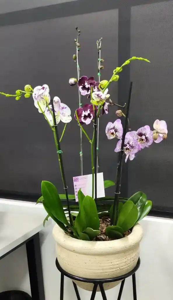 Hermoso jardín contiene 3 orquideas 1 vara + matera en cuenca grande (Ten en cuenta que este producto esta sujeto a cambios según su disponibilidad y temporada)